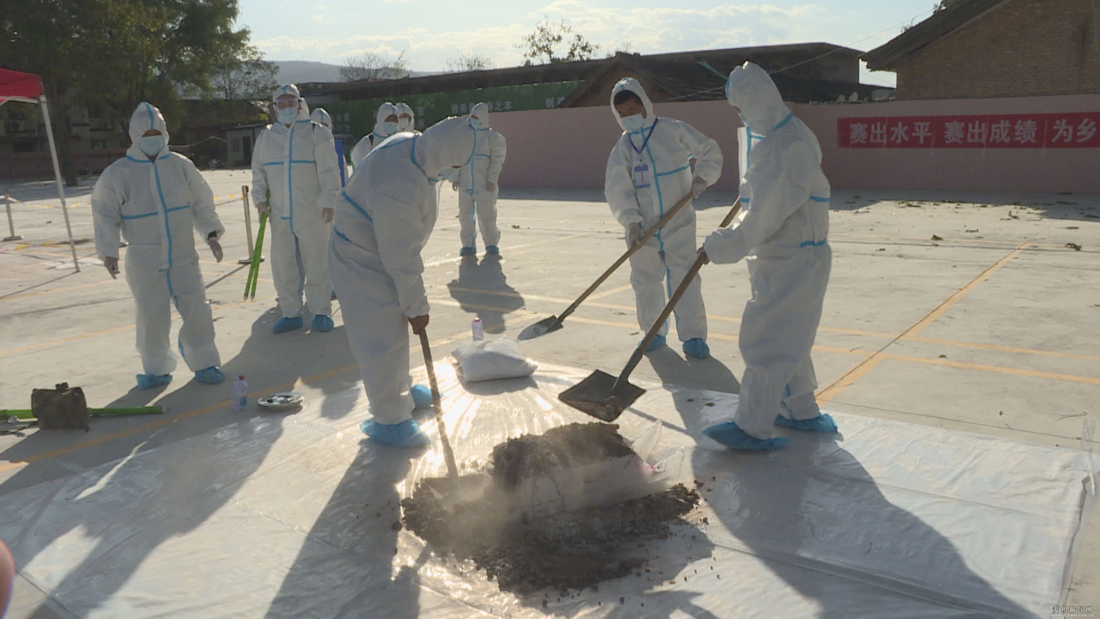 本次應(yīng)急演練由麥積區(qū)畜牧中心牽頭舉辦,演練項(xiàng)目分為疫情報(bào)告診斷與先期處置、應(yīng)急響應(yīng)與應(yīng)急處置、應(yīng)急響應(yīng)終止與善后處置等,演練人員由疫情報(bào)告、現(xiàn)場(chǎng)疫情診斷、流行病學(xué)調(diào)查、無害化處理、消毒、封鎖、評(píng)估等12個(gè)小組構(gòu)成。演練模擬某生豬養(yǎng)殖場(chǎng)突發(fā)“非洲豬瘟”重大動(dòng)物疫情,村級(jí)防疫員發(fā)現(xiàn)疫情后,立即向上級(jí)逐級(jí)報(bào)告并啟動(dòng)應(yīng)急預(yù)案。隨著指揮長(zhǎng)一聲令下,各防疫處置小組各司其職、迅速行動(dòng),按照相關(guān)程序分工協(xié)作、相互配合,現(xiàn)場(chǎng)診斷、劃定封鎖疫點(diǎn)疫區(qū)、撲殺處置、無害化處理、消毒滅源等規(guī)范程序有序進(jìn)行。通過演練活動(dòng),進(jìn)一步提升了相關(guān)職能部門對(duì)重大動(dòng)物疫防控應(yīng)急反應(yīng)能力、實(shí)戰(zhàn)能力和協(xié)作處置能力,確保一旦發(fā)生疫情時(shí),能夠做到迅速啟動(dòng)、快速反應(yīng)、沉著應(yīng)對(duì)、處置有序,達(dá)到重大動(dòng)物疫情“早發(fā)現(xiàn),早報(bào)告、快反應(yīng),嚴(yán)處理”的目的。