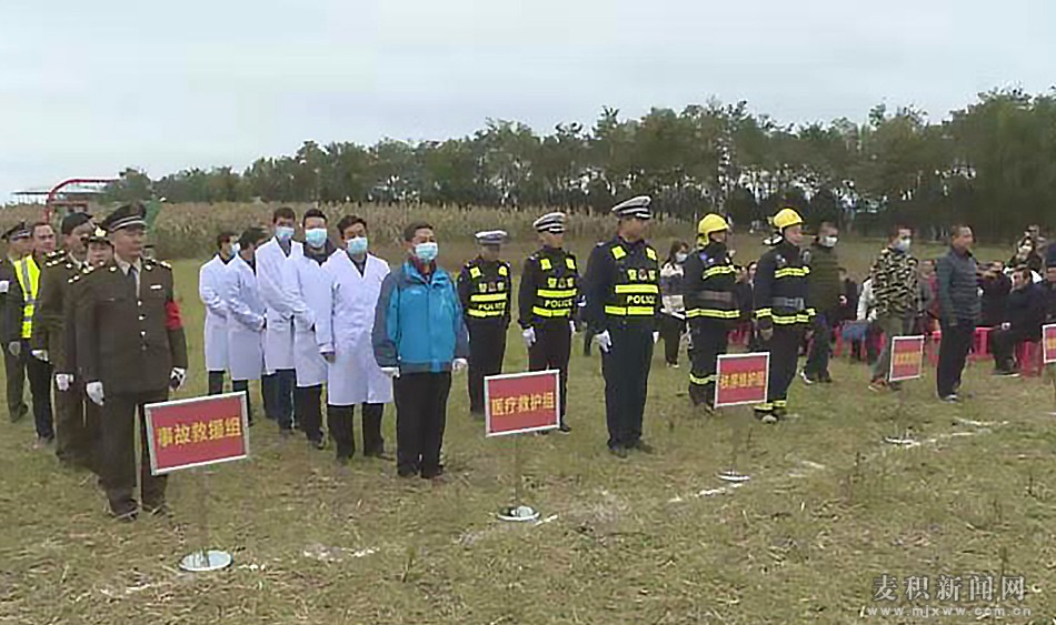 麥積區(qū)融媒體中心訊(見習(xí)記者王惠萍)10月17日,由麥積區(qū)農(nóng)業(yè)農(nóng)村局、應(yīng)急管理局、公安交警大隊、120急救中心等多部門共同參與的麥積區(qū)2021年農(nóng)機(jī)事故應(yīng)急演練活動在花牛鎮(zhèn)董源村舉行。省農(nóng)機(jī)監(jiān)理總站黨委書記、站長于水,副區(qū)長張偉現(xiàn)場觀摩了此次演練活動。