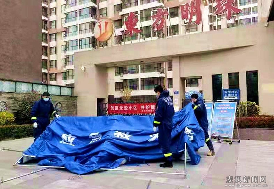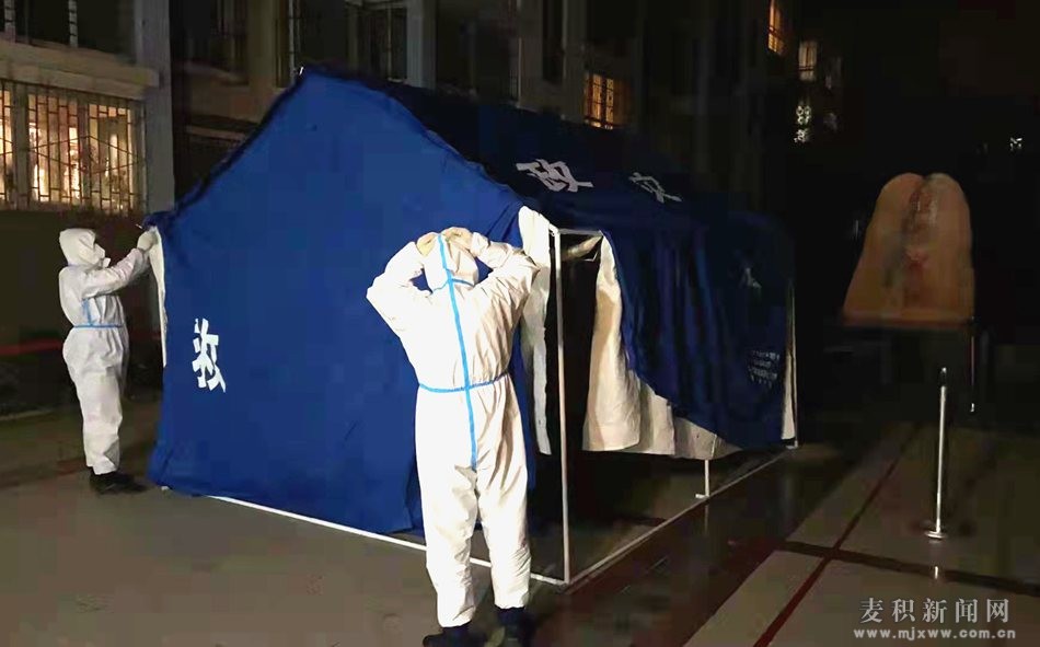 在從市應(yīng)急物資庫調(diào)運363頂棉帳篷過程中,麥積區(qū)消防隊全體消防隊員和麥積區(qū)糧食和物資儲備局、軍糧供應(yīng)站、天水金穗糧油儲備有限公司的干部、職工相互配合,共同奮戰(zhàn),連續(xù)工作一天一夜,進行裝御、運送和安裝等作業(yè),順利將此批帳篷從秦州區(qū)皂郊物資倉庫調(diào)運、配送至麥積城區(qū)各疫情防控一線。