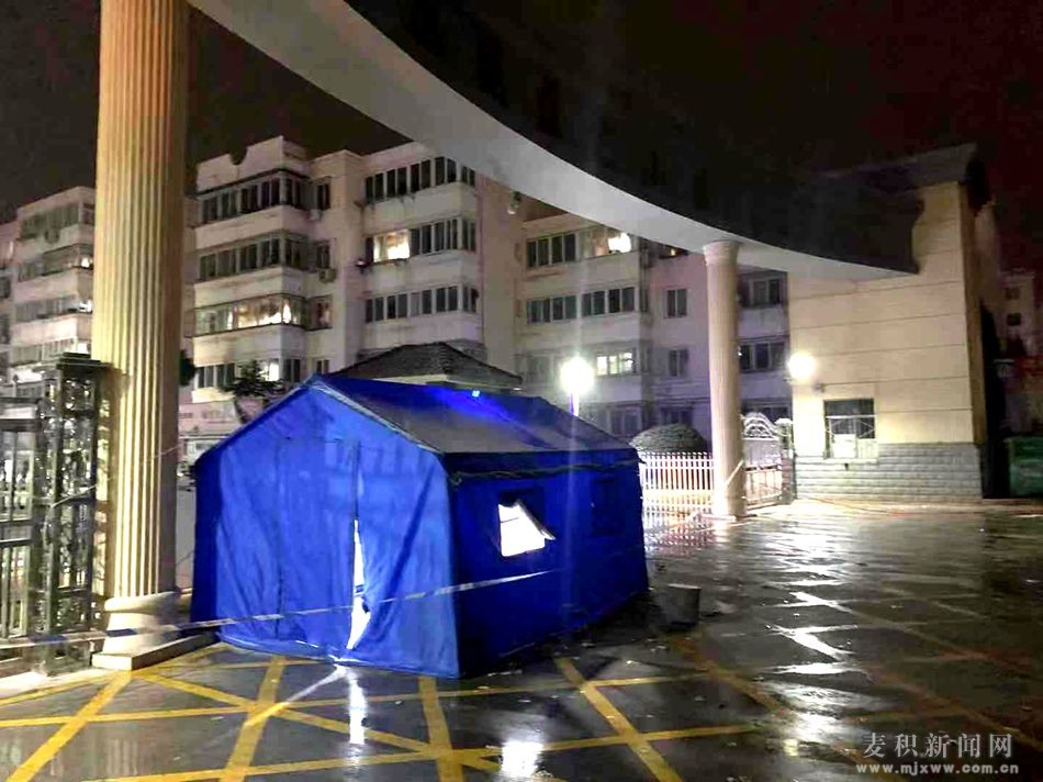 11月6日晚9時(shí)許,當(dāng)居民都在家里享受茶余飯足的愜意時(shí)光時(shí),來自麥積公安分局及區(qū)城管局廣場(chǎng)管理處的志愿者們正在小區(qū)值守點(diǎn)忙碌著,嚴(yán)控車輛和人員進(jìn)出,做好各項(xiàng)防控工作。雖然準(zhǔn)備了取暖設(shè)備,可是在零下的長(zhǎng)夜里效果甚微。此刻,一個(gè)搭起的簡(jiǎn)易帳篷,就是他們筑起的“城池營(yíng)地”。