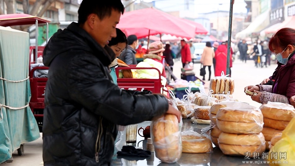 走進(jìn)麥積區(qū)新陽鎮(zhèn)集市,入眼可見集市人潮涌動,琳瑯滿目的新年貨物隨處可見:扎堆排列的米面糧油、五顏六色的瓜果蔬菜水果糖、喜慶紅火的窗花對聯(lián)中國結(jié)、各式各樣的特色小吃……可謂是應(yīng)有盡有。