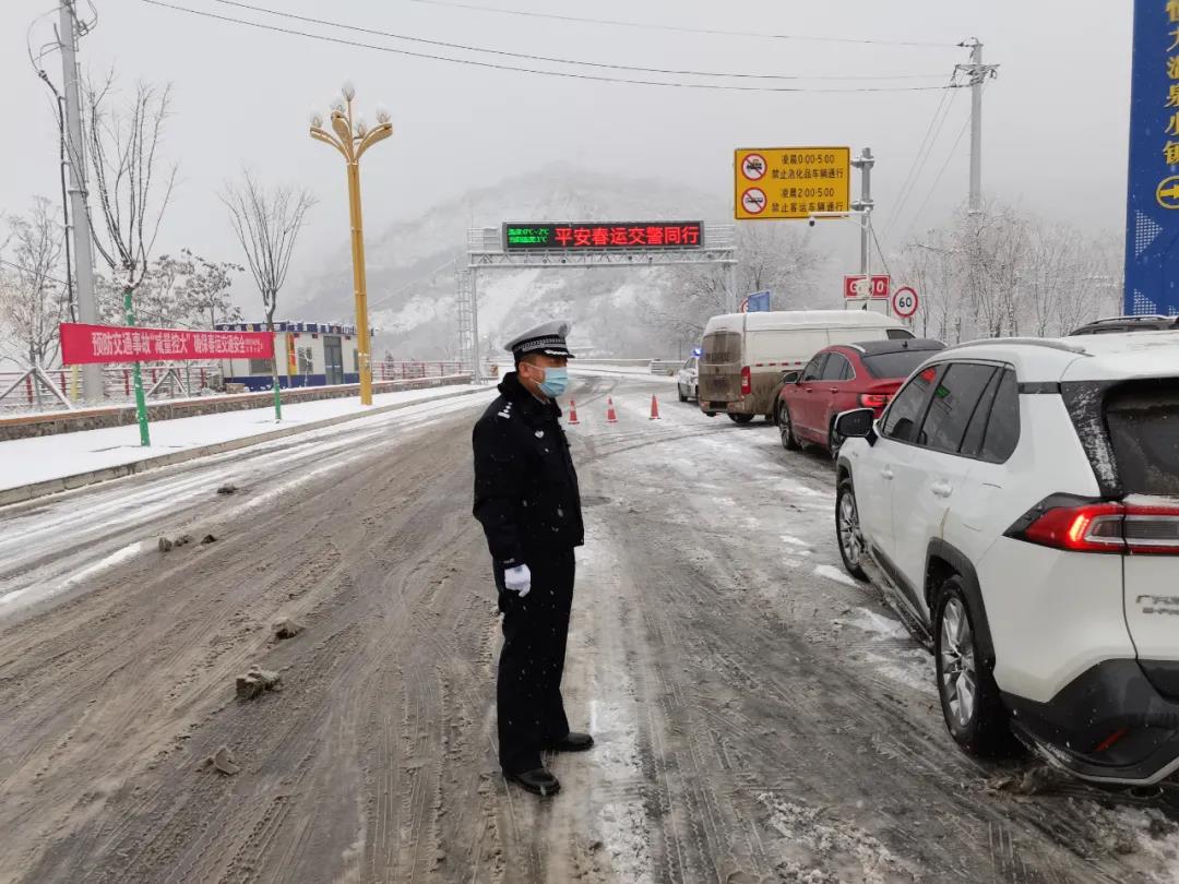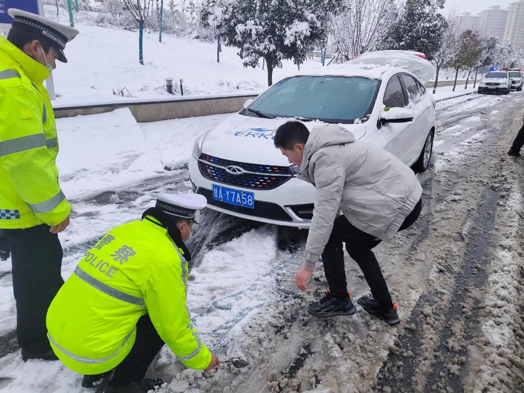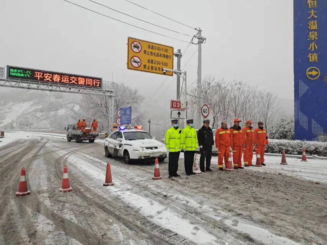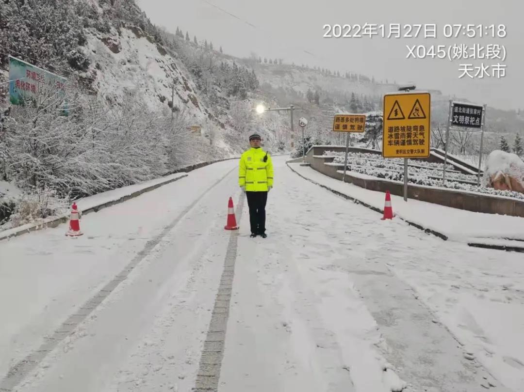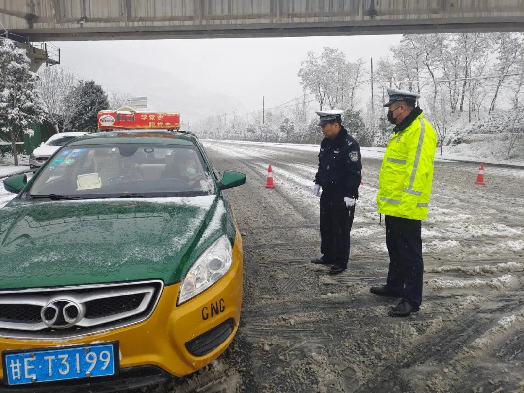 在執(zhí)勤過程中,執(zhí)勤人員向過往車輛及行人進行安全溫馨提示:雨雪低溫天氣出行務必減速慢行,保持安全車距。并聯(lián)合公路段對對危險路段、事故多發(fā)路段、冰雪路段的撒鹽除冰、撒土防滑等工作,確保行車安全。大隊依托天水交通廣播FM919、天水周刊、微博、微信及時發(fā)布路況信息,提示駕駛?cè)撕侠磉x擇出行路線,引導社會車輛雪天減速慢行、安全行駛。