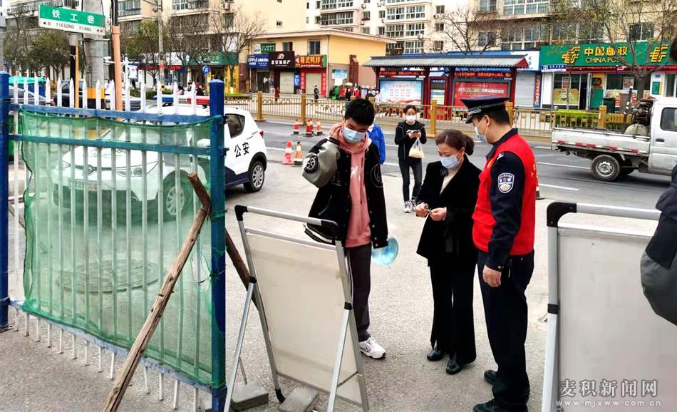 清明假期正是疫情防控關(guān)鍵時期,容不得絲毫懈怠。在道北街道鐵工巷棚戶區(qū)巷道口,社區(qū)志愿者正聯(lián)同包抓單位一起,對進出的居民仔細詢問以及掃碼查驗。社區(qū)工作人員告訴記者,早在假期前,社區(qū)就對轄區(qū)進行了上門摸排工作,在居民微信群里及時發(fā)放《致廣大居民告知書》,將麥積區(qū)對來麥返麥人員的管控措施進行了詳細告知,為轄區(qū)居民筑起小區(qū)安全防疫墻。