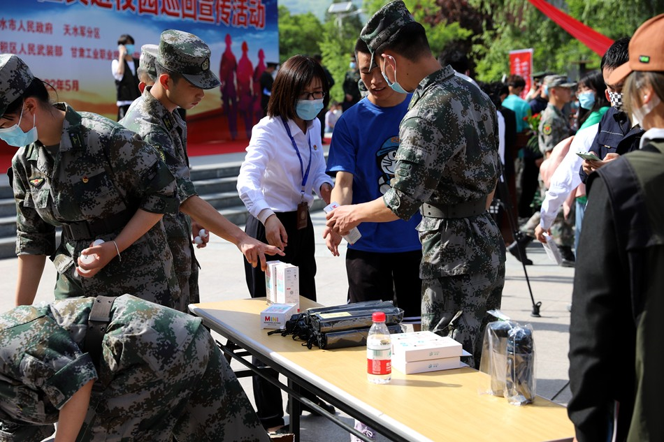 麥積區(qū)融媒體中心訊(記者 張麗媛 牛勇)為響應(yīng)國家號召,扎實做好2022年國防教育及高校大學(xué)生征兵工作,激發(fā)廣大學(xué)子參軍報國熱情,5月19日,“2022年天水市大學(xué)生征兵進(jìn)校園巡回宣傳活動”走進(jìn)甘肅省工業(yè)職業(yè)技術(shù)學(xué)院。市委常委、市征兵工作領(lǐng)導(dǎo)小組副組長、天水軍分區(qū)司令員宋英武,麥積區(qū)委常委、人武部政委雷鵬英出席活動。