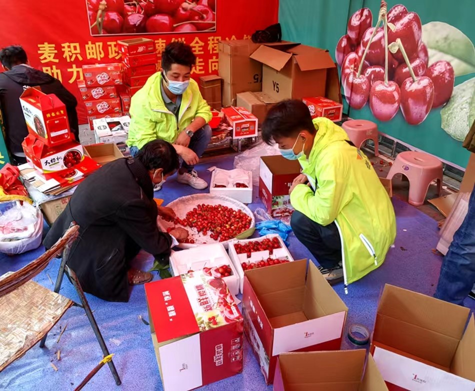 麥積區(qū)融媒體中心訊(記者 王惠萍 王瑋瑕)晶瑩剔透、甜美多汁的大櫻桃總能勾起人們的味蕾。眼下正是大櫻桃豐收采摘和集中上市的季節(jié),為了讓全國(guó)各地的朋友都能品嘗到最新鮮口感的大櫻桃,順豐、郵政等快遞公司在麥積區(qū)大櫻桃銷(xiāo)售市場(chǎng)內(nèi)設(shè)置遠(yuǎn)程寄送點(diǎn),讓天水大櫻桃坐上“頭等艙”,以最快的速度走向全國(guó),走進(jìn)千家萬(wàn)戶。