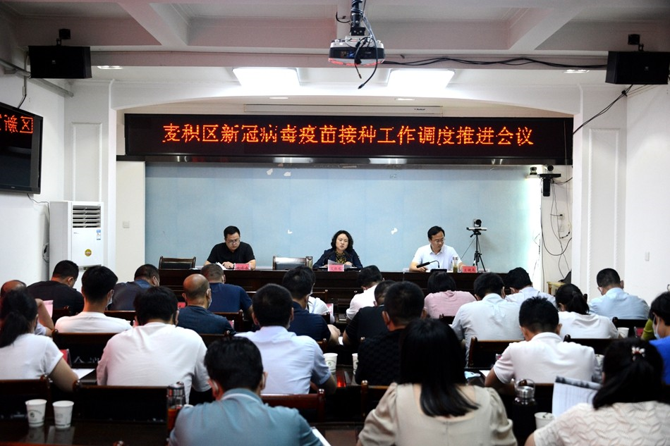 麥積區(qū)融媒體中心訊(記者 李云強) 6月27日,在全省、全市新冠病毒疫苗接種工作視頻調(diào)度會議之后,為了迅速貫徹落實會議精神,麥積區(qū)召開新冠病毒疫苗接種工作調(diào)度推進會議。區(qū)政府副區(qū)長成紅梅主持會議。
