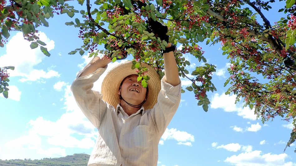 從早上五點(diǎn)起床開始準(zhǔn)備,再步行到花椒地里,村民邱方慧一家已經(jīng)在自家花椒地里忙碌了大半天。邱方慧的手指在花椒枝里嫻熟又靈活地翻動著,一簇簇花椒就掉落在了竹籃里。邱方慧說,她是專程從外地趕回來幫著家里采摘花椒的。今年的雨水少,相較往年采摘期晚了些,可是串串顆粒飽滿,紅得均勻,花椒產(chǎn)量也好!拔覀兗疫@個(gè)花椒大概種了7、8年了,我們是從7月15號左右開始采摘的。今年的產(chǎn)量相對往年稍微高一點(diǎn),希望能賣個(gè)好價(jià)錢!鼻穹交鄹吲d地說。