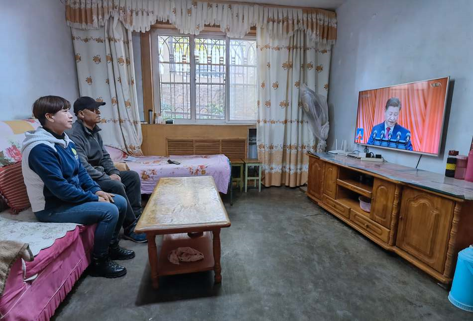 (道北街道北山路社區(qū)居民在家中收看黨的二十大開(kāi)幕會(huì)盛況)