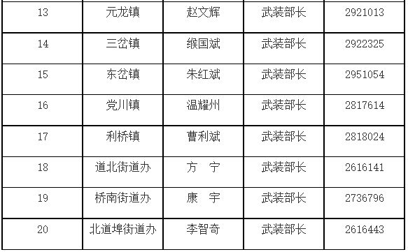 2.麥積區(qū)各鎮(zhèn)、街道武裝部咨詢電話