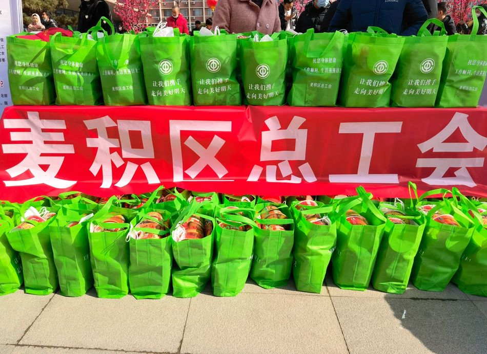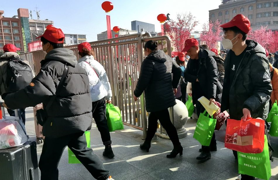 當(dāng)天,冬陽溫暖,在天水火車站站前廣場,隨著麥積區(qū)2023年“春風(fēng)行動”外出務(wù)工人員歡送儀式的順利舉行,在場的務(wù)工人員們排好隊列、整裝待發(fā),準(zhǔn)備乘坐麥積區(qū)精心準(zhǔn)備的“務(wù)工專車”以及“務(wù)工專列”赴浙江、江蘇等地返崗復(fù)工。同時,他們還領(lǐng)取了由麥積區(qū)總工會為其準(zhǔn)備的裝有方便面、面包和牛奶的“愛心禮包”,既暖心又貼心。此次“點對點”輸送外出務(wù)工人員的舉措不僅能幫助外出務(wù)工人員免費乘車、順利返崗,而且通過兩地對接、全程監(jiān)測和密閉輸送,最大程度地確保外出務(wù)工人員的安全,這一暖心舉措讓所有外出務(wù)工人員都倍感安心、放心。