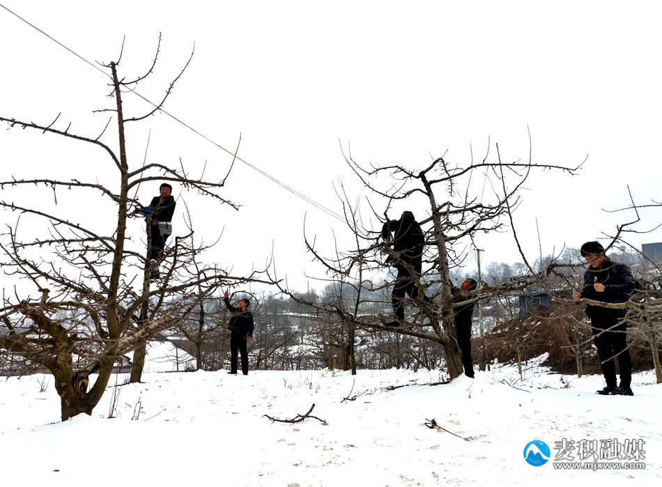 “今年我種了七八畝蘋果,這場雪下得好,果樹和土壤的情況都比較好,我就趕緊叫了些親朋給我?guī)兔Γ褬湫藜袅,之后要抓緊埋化肥……”付忠生高興地說。