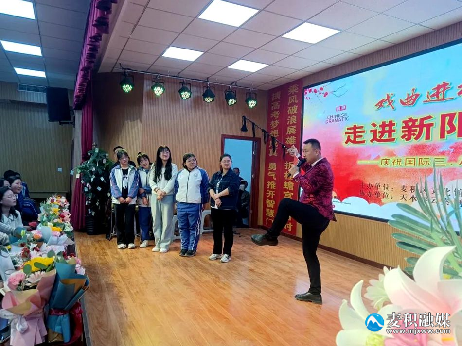 麥積區(qū)融媒體中心訊 為大力弘揚(yáng)中華優(yōu)秀傳統(tǒng)文化,增強(qiáng)學(xué)生文化素養(yǎng)和文化自信,促進(jìn)戲曲藝術(shù)在校園的傳播普及和傳承發(fā)展,近日,由麥積區(qū)文化館、新陽(yáng)中學(xué)組織主辦,天水春云秦劇團(tuán)協(xié)辦的“戲曲進(jìn)校園”活動(dòng)在麥積區(qū)新陽(yáng)中學(xué)精彩上演。