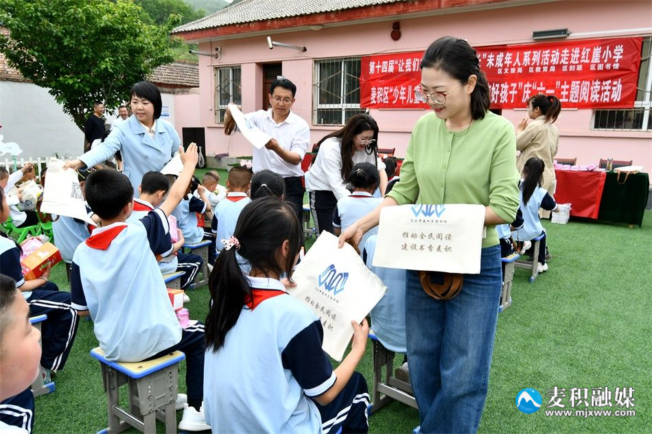活動(dòng)中,麥積區(qū)圖書館向紅崖小學(xué)贈(zèng)送圖書100冊(cè)、期刊100冊(cè),為孩子們贈(zèng)送文創(chuàng)手提袋、筆袋;區(qū)婦聯(lián)為該校全體學(xué)生贈(zèng)送了水杯和學(xué)習(xí)文具;顒(dòng)還通過(guò)“小吳姐姐”講故事、經(jīng)典誦讀、做趣味游戲等內(nèi)容豐富、形式新穎、寓教于樂的活動(dòng)給孩子們送去了節(jié)日的祝福,享受閱讀帶來(lái)的快樂。