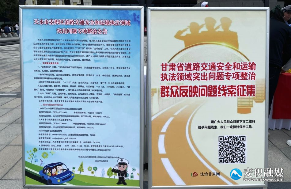 麥積區(qū)融媒體中心訊(記者 呂柄輝)為了深入開展道路交通安全和運(yùn)輸執(zhí)法領(lǐng)域突出問題專項(xiàng)整治,5月31日,麥積區(qū)委全面依法治區(qū)委員會(huì)組織開展道路交通安全和運(yùn)輸執(zhí)法領(lǐng)域突出問題專項(xiàng)整治集中宣傳活動(dòng)。