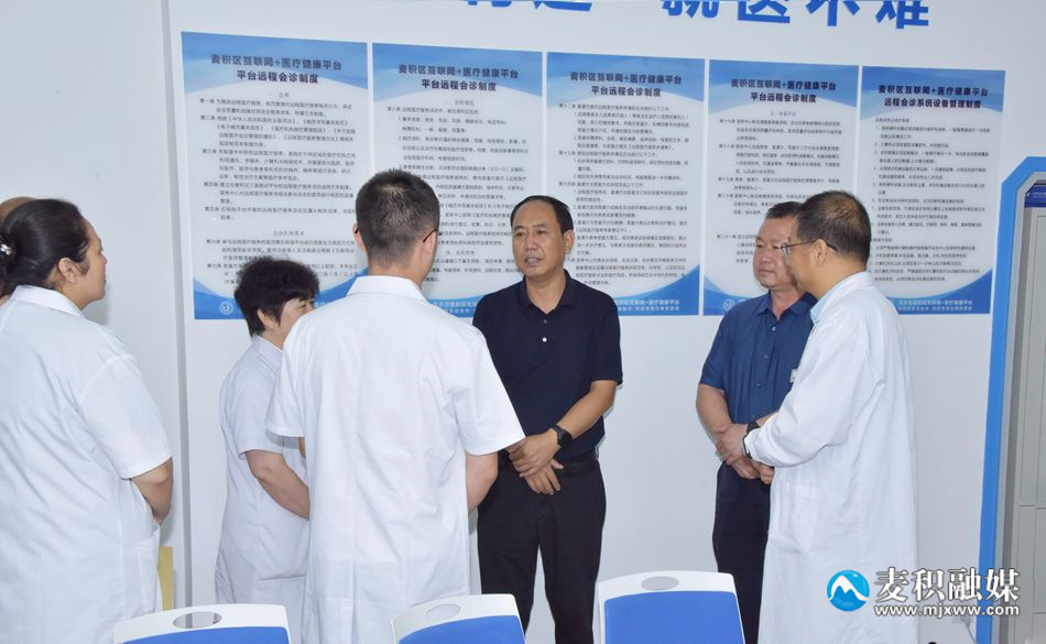 麥積區(qū)融媒體中心訊(記者 龍?jiān)骑w 王惠萍)9月20日,在中秋國(guó)慶雙節(jié)來臨之際,區(qū)委書記康泰來到天水市第二人民醫(yī)院看望慰問醫(yī)療“組團(tuán)式”幫扶干部,并代表區(qū)四大組織和65萬麥積人民向他們致以節(jié)日的問候和美好祝愿。區(qū)委副書記王明一同慰問。