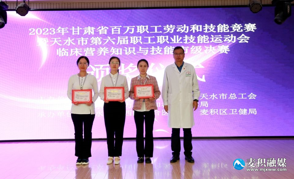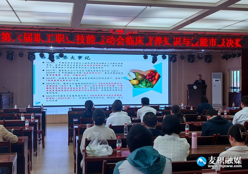 本次競賽由天水市衛(wèi)生健康委員會、天水市總工會及天水市人力資源和社會保障局主辦,天水市中西醫(yī)結(jié)合醫(yī)院、麥積區(qū)衛(wèi)生健康局承辦。競賽采用理論與實操相結(jié)合的形式進(jìn)行,共設(shè)置了臨床營養(yǎng)知識競答、實踐技能比拼、科普傳播技能展示及專家授課四個環(huán)節(jié)。