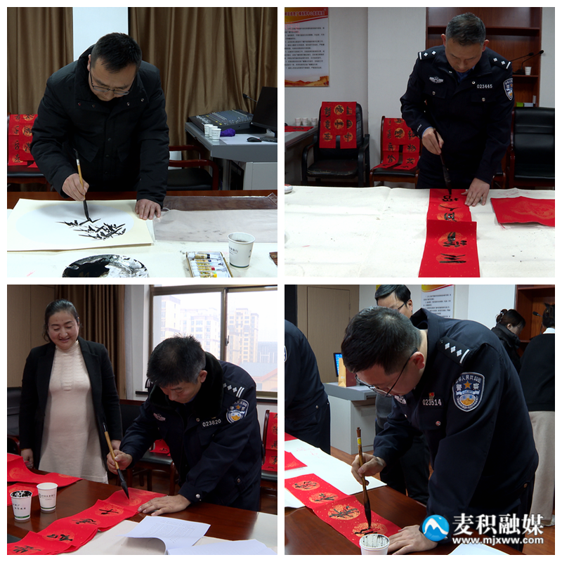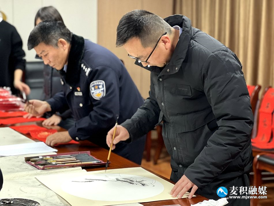 一對(duì)對(duì)祝福滿滿的春聯(lián)、一張張喜慶吉祥的福字、一幅幅寓意美好的畫作,為區(qū)融媒體中心干部職工送上了美好的新春祝福,更飽含了強(qiáng)化警媒協(xié)作的美好愿景。麥積公安文聯(lián)會(huì)員和區(qū)融媒體中心書畫愛(ài)好者現(xiàn)場(chǎng)交流分享文藝創(chuàng)作經(jīng)驗(yàn),相互學(xué)習(xí)、共同提升,取得了良好的效果。