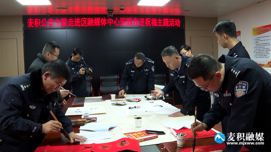 麥積區(qū)融媒體中心訊(記者 馬玉婷)為大力弘揚(yáng)中華優(yōu)秀傳統(tǒng)文化,進(jìn)一步密切警媒關(guān)系,營(yíng)造濃厚的節(jié)日氛圍,1月31日,麥積公安文聯(lián)走進(jìn)麥積區(qū)融媒體中心開(kāi)展“迎新春送祝!敝黝}活動(dòng)。