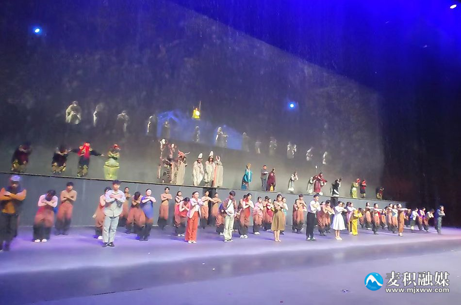 “豈曰無(wú)衣?與子同袍。王于興師,修我戈矛。與子同仇!”隨著第二場(chǎng)景的落幕,觀眾再次穿過(guò)記錄著歷史的長(zhǎng)廊,來(lái)到了第三幕“人”。波濤洶涌中,伏羲一畫開(kāi)天;生死輪回中,莎嘎和拉嘎走出了天地日月;開(kāi)疆辟土的老秦人念念不忘的,依舊是隴西的月;千里求學(xué)的石作蜀,最終用儒學(xué)反哺這片故土;李廣大破匈奴,戎馬一生,唯愿國(guó)泰民安;輾轉(zhuǎn)蜀魏,命運(yùn)跌宕,姜維率兵北伐;馮國(guó)瑞走進(jìn)麥積,將文化火種傳遞……從伏羲祭奠,秦人故土,到馮國(guó)瑞與麥積煙雨,講述著根脈故里的堅(jiān)守、歸根與傳承。