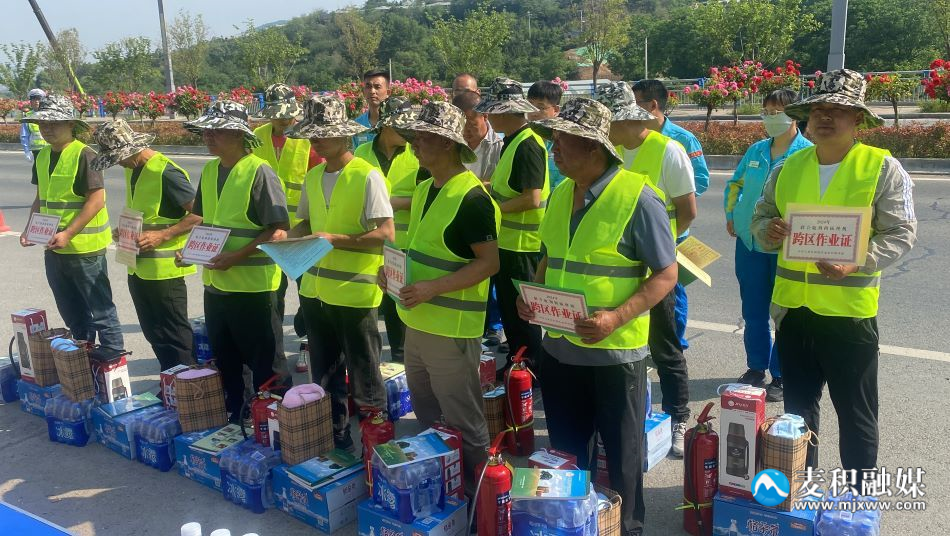 現(xiàn)場(chǎng)還為機(jī)手們頒發(fā)了《聯(lián)合收割機(jī)跨區(qū)作業(yè)證》,并發(fā)放了反光馬甲、滅火器等農(nóng)機(jī)安全應(yīng)急物品,以及熱水壺、遮陽(yáng)帽、手套、毛巾等防護(hù)、防暑慰問(wèn)品。
