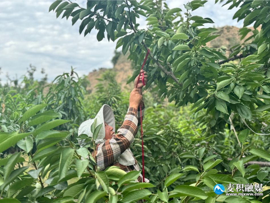 “果園現(xiàn)在處于取袋的時(shí)間段,一般套袋的時(shí)候在端午前后,40天左右取袋,是最佳狀態(tài)!比柎R桃園技術(shù)員緱虎成介紹說,“我們這里的土壤屬于黃砂土、紅砂土,種出來的果子含糖量比較高。同時(shí),這里的氣候春季霜凍較少,秋季溫差較大,成熟后的果子口感比較好!