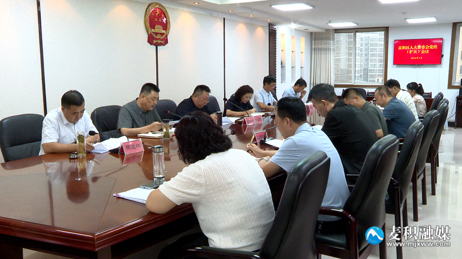 麥積區(qū)融媒體中心訊(記者陶宇)7月23日,麥積區(qū)人大常委會(huì)黨組召開(擴(kuò)大)會(huì)議,傳達(dá)學(xué)習(xí)黨的二十屆三中全會(huì)精神。區(qū)人大常委會(huì)黨組書記、主任趙繼文主持會(huì)議并講話。區(qū)人大常委會(huì)黨組副書記、副主任高炳蔚,黨組成員、副主任蒲海濱、陳寶林、謝崇太出席會(huì)議,副主任楊彥芳列席會(huì)議。