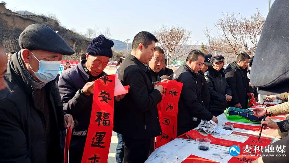 在活動現(xiàn)場,麥積區(qū)的部分書畫愛好者揮毫潑墨,為村民們書寫春聯(lián),贈送書法、繪畫作品,深受群眾喜愛!斑@次‘三下鄉(xiāng)’活動搞得非常好,有寫春聯(lián)的、有量血壓的、還有舞蹈表演,給孩子發(fā)書等活動。希望以后能多舉辦這樣的活動!贝迕顸S利民高興地說。