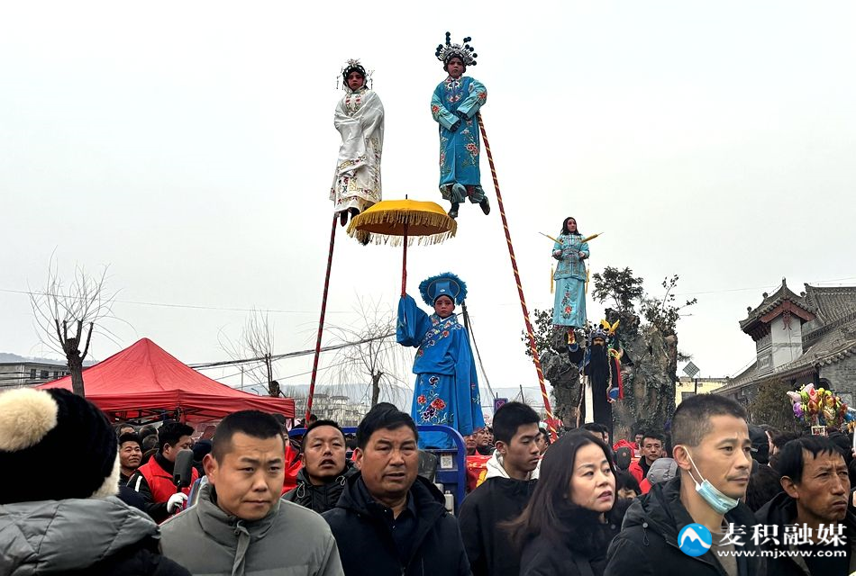 據(jù)悉,每年“上九”之際,麥積鎮(zhèn)各村便會自發(fā)組織“煙歌”隊齊聚街亭古鎮(zhèn),開啟社火游街活動,用“耍煙歌”這種歡快而純粹的表演形式,將新春的祝福、對來年美好生活的向往與追求,直接而真摯地傳遞給每一位觀眾,讓人們在歡聲笑語中感受傳統(tǒng)民俗的魅力。