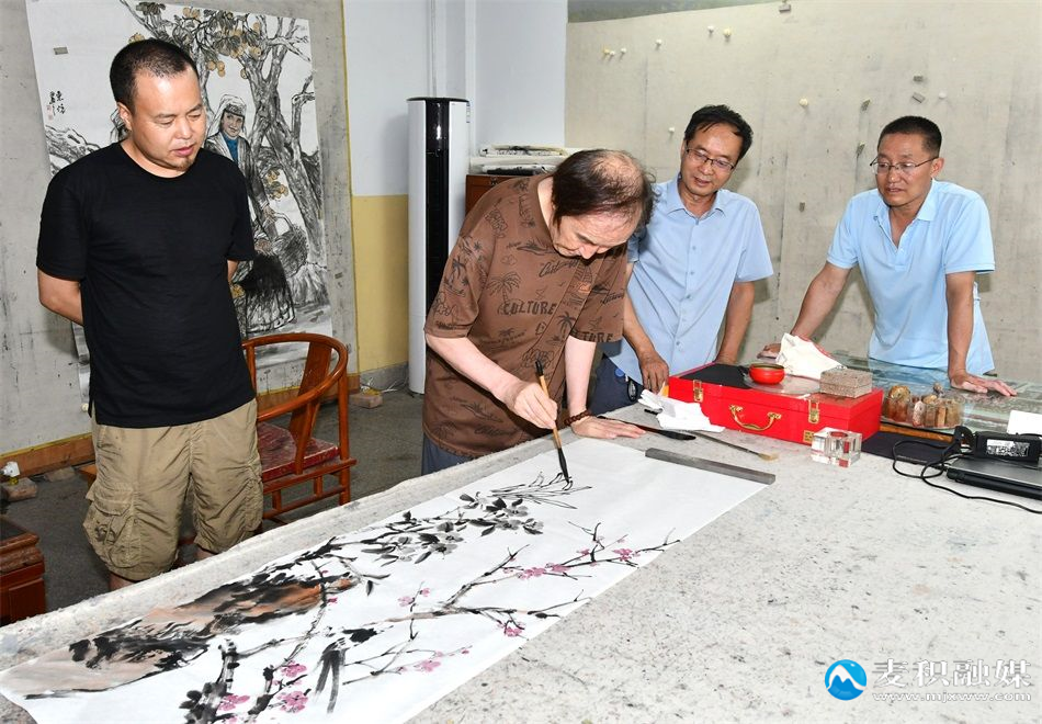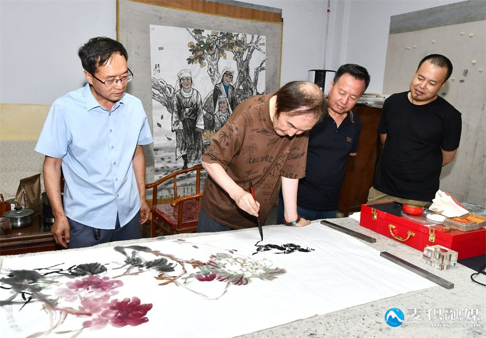 麥積區(qū)融媒體中心訊(特約記者 竇耀輝 實習記者 竇藝)為喜迎國慶、中秋“雙節(jié)”的到來,近日,位于麥積區(qū)社棠鎮(zhèn)的羲里畫院舉辦了一場精彩紛呈的書畫交流活動。書畫藝術(shù)家們齊聚一堂,在筆墨丹青間交流技藝、分享心得,以傳統(tǒng)藝術(shù)形式表達對祖國的祝福和對美好生活的向往。