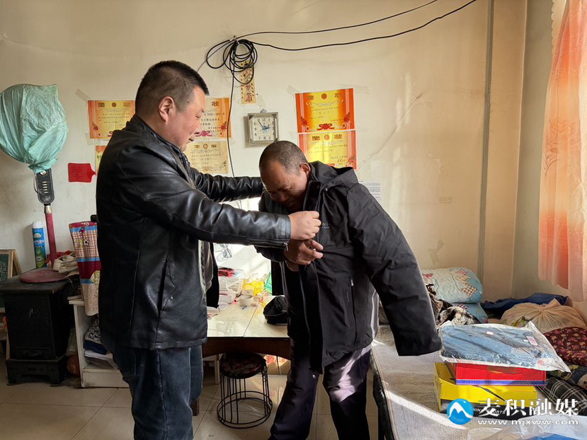 “每年冬天你們都送來這么多東西,這棉衣一穿,身上暖,心里更暖!”麥積鎮(zhèn)宏羅村特困供養(yǎng)戶王保強拉著村委會主任溫愛榮的手激動地說。王保強無兒無女,長年獨居,腿腳不便,是村里的重點幫扶對象。看著村干部們把一噸煤炭整齊碼放在屋檐下,又把秋衣秋褲、棉鞋單鞋一一擺放在床頭,他緊緊握著溫愛榮的手,臉上滿是感動。