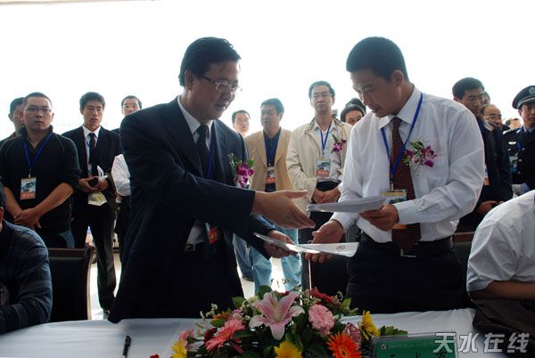 此次重點簽約的15個招商引資合同項目中,由正寧縣政府與中國華能能源開發(fā)有限公司簽約的總投資80億元的“正寧煤電及水源交通基礎(chǔ)建設(shè)”項目是投資額最大的項目。還簽訂了一批工業(yè)項目、農(nóng)副產(chǎn)品加工項目、科技項目以及基礎(chǔ)設(shè)施建設(shè)、水電站建設(shè)等領(lǐng)域的項目。崆峒區(qū)政府與安徽海螺水泥集團簽訂總投資15億元的“平?jīng)龈煞ㄋ嗌a(chǎn)線”項目;蘭州市經(jīng)濟技術(shù)開發(fā)區(qū)與甘肅真琛通源能源開發(fā)有限公司簽訂總投資16.3億元的“蘭州市二甲醚生產(chǎn)線”項目;白銀市鄉(xiāng)企局與浙江客商高明華簽訂總投資1.7億元的“白銀華惠集團擴建4萬噸啤酒麥芽生產(chǎn)線”項目等。
