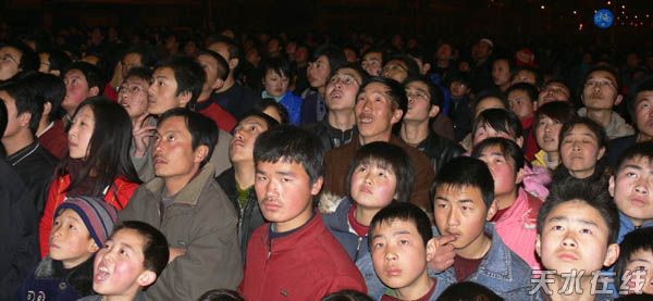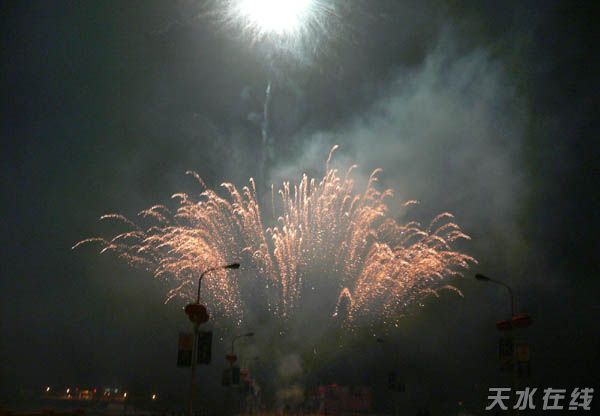 男:萬紫千紅總是春,火樹銀花不夜城。此時(shí)此刻,這里的夜空真是花的海洋,這里的葫蘆河橋頭真是人群的海洋,整個(gè)秦安縣城真是歡樂的海洋。