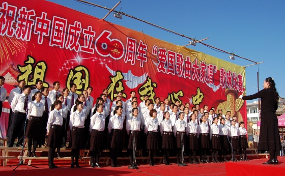 ·新中國60年甘肅省建設(shè)成就展天水展區(qū)開展(組圖)·天水市教育系統(tǒng)舉行“祖國萬歲”大合唱(組圖)