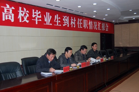 1月17日,秦安縣召開選聘高校畢業(yè)生到村任職情況匯報會。會議由縣委組織部副部長李永忠主持,縣委常委、組織部長郭海軍作了重要講話。參加會議的有各鄉(xiāng)鎮(zhèn)黨委書記、組織干事、縣委組織部干部、選聘到村任職的高校畢業(yè)生等共90多人。會上, 21名選聘大學生村官到會就到村任職情況進行了匯報發(fā)言。
