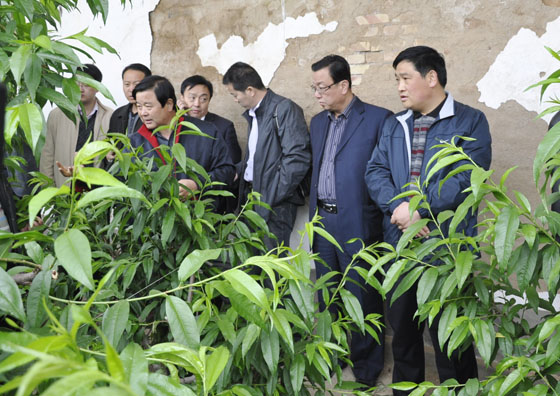 考察團(tuán)成員每到一處,都仔細(xì)聽取相關(guān)介紹,詳細(xì)了解農(nóng)業(yè)設(shè)施建設(shè)和農(nóng)業(yè)種植生產(chǎn)情況。柴家山農(nóng)業(yè)綜合開發(fā)示范區(qū)通過個(gè)體承包,分類經(jīng)營等方式,堅(jiān)持生態(tài)效益和經(jīng)濟(jì)效益相統(tǒng)一,把造林綠化與產(chǎn)業(yè)結(jié)構(gòu)相結(jié)合,農(nóng)業(yè)綜合開發(fā)與觀光旅游相結(jié)合,在埂上搞綠化,依埂種葡萄,埂下栽果樹,達(dá)到“春有花、夏有蔭、秋有果、冬有綠”的農(nóng)業(yè)綜合開發(fā)格局。劉坪鄉(xiāng)杜寨“五位一體”山地日光溫室示范園區(qū)通過典型示范和整體推進(jìn)等方式,建成日光溫室150多座,沼氣200多眼,水窖400多眼,養(yǎng)殖廠16個(gè),容量達(dá)1500噸的冷藏庫1處。劉坪鄉(xiāng)何灣萬畝優(yōu)質(zhì)無公害桃生產(chǎn)基地涉及何灣、鄧坪等8個(gè)村,已栽植優(yōu)質(zhì)無公害桃12800畝。2009年生產(chǎn)綠色鮮桃1800萬公斤,產(chǎn)值達(dá)4320萬元。