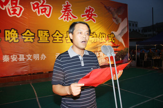 縣委常委、宣傳部長李尚平在“紅歌唱響秦安”系列活動啟動儀式上致辭。李尚平強(qiáng)調(diào),各鄉(xiāng)鎮(zhèn)、各部門、各單位一定要從講政治的高度充分認(rèn)識組織開展“紅歌唱響秦安”活動的重要意義,把這項(xiàng)活動作為全縣深化群眾性愛國主義教育活動的有效載體,切實(shí)加強(qiáng)組織領(lǐng)導(dǎo),認(rèn)真安排部署,積極動員干部群眾廣泛參與。通過這項(xiàng)活動,進(jìn)一步展現(xiàn)我縣廣大干部群眾團(tuán)結(jié)進(jìn)取、奮發(fā)向上的精神風(fēng)貌,進(jìn)一步增強(qiáng)發(fā)展信心,凝聚發(fā)展合力,搶抓機(jī)遇,開拓創(chuàng)新,真抓實(shí)干,為加快建設(shè)富裕、文明、和諧新秦安做出新的更大的貢獻(xiàn)。