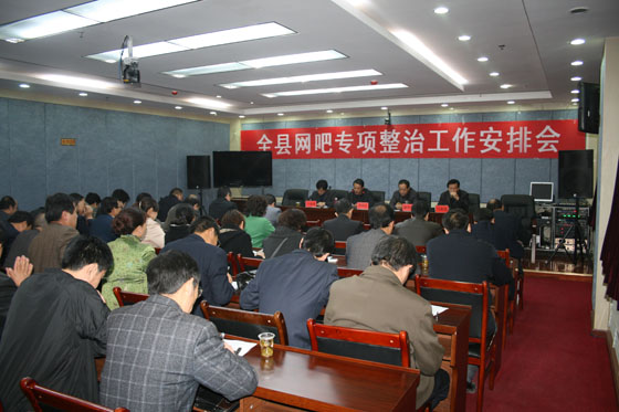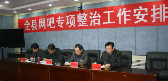 會(huì)上,副縣長(zhǎng)王成成宣讀了《各職能部門(mén)、單位在網(wǎng)吧管理中的職責(zé)分工》,副縣長(zhǎng)郭雙江安排網(wǎng)吧整治的重點(diǎn)工作,文化、工商、公安、電信部門(mén)就履行各自職責(zé)作了表態(tài)發(fā)言,宣傳部部長(zhǎng)李尚平傳達(dá)縣委書(shū)記徐健關(guān)于此次網(wǎng)吧專項(xiàng)整治工作安排的重要指示。