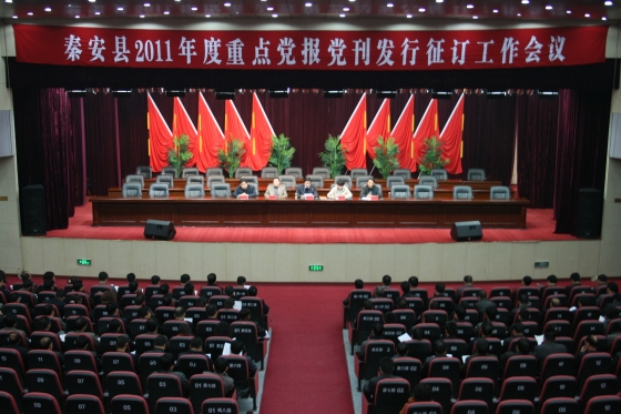 11月10日上午,秦安縣2011年度黨報(bào)黨刊發(fā)行工作會(huì)議在行政中心禮堂召開。會(huì)議傳達(dá)了全市黨報(bào)黨刊發(fā)行工作會(huì)議精神,總結(jié)了2010年度黨報(bào)黨刊發(fā)行工作,表彰了發(fā)行征訂工作先進(jìn)單位,安排部署2011年度的黨報(bào)黨刊發(fā)行工作,進(jìn)一步組織動(dòng)員全縣上下統(tǒng)一思想、提高認(rèn)識(shí),全面完成市上下達(dá)的征訂任務(wù)。會(huì)議要求,全縣各級(jí)黨政組織要進(jìn)一步加強(qiáng)領(lǐng)導(dǎo),強(qiáng)化措施,確保黨報(bào)黨刊征訂穩(wěn)中有升。縣委副書記、縣長(zhǎng)王東紅,縣委常委、組織部長(zhǎng)郭海軍,縣委常委、宣傳部長(zhǎng)李尚平,縣委常委、興國(guó)鎮(zhèn)黨委書記楊喜春,各鄉(xiāng)鎮(zhèn)黨委書記,縣直及駐秦各單位主要負(fù)責(zé)同志,部分企業(yè)負(fù)責(zé)人,全縣中小學(xué)校長(zhǎng)、學(xué)區(qū)負(fù)責(zé)人共200多人參加會(huì)議。會(huì)議由縣委副書記程江芬主持。