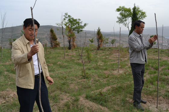 張璞銀、李尚平通過實地查看,對各重點區(qū)域的植樹造林成活情況逐一進行了檢查。檢查中發(fā)現(xiàn)個別單位由于沒有及時澆水和殺蟲,部分樹苗已干枯,一些樹苗活著但仍未發(fā)芽,個別樹苗有病蟲害。