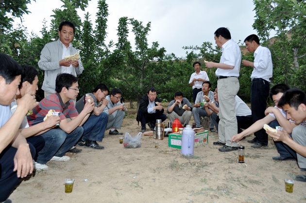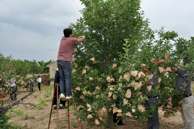 在村民劉萬錄家的果園里,經(jīng)過其妻子李小琴的現(xiàn)場演示,大家開始套袋。雖然干部們對套袋不很熟練,但是他們能吃苦,有耐心,認(rèn)真細(xì)致,半天下來,累計套袋4000多只,受到果農(nóng)們的稱贊。