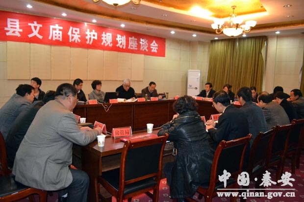 縣人大副主任魏千乙在講話中指出,《秦安文廟保護(hù)規(guī)劃》是繼《大地灣遺址保護(hù)規(guī)劃》之后秦安縣文物保護(hù)工作中的又一個十分重要的規(guī)劃,對科學(xué)、有效、規(guī)范和依法保護(hù)文廟文化遺產(chǎn)將起到十分重要的指導(dǎo)作用!肚匕参膹R保護(hù)規(guī)劃》編制工程由河南省文物建筑保護(hù)設(shè)計研究中心、蘭州河隴文化遺產(chǎn)規(guī)劃設(shè)計有限責(zé)任公司和縣文廟管理所共同承擔(dān),經(jīng)過一段時期的工作,目前《規(guī)劃》初稿已完成,為進(jìn)一步完善《規(guī)劃》,切實(shí)搞好《規(guī)劃》編制工作,按照編制程序,縣政府決定召開《秦安文廟保護(hù)規(guī)劃》初稿意見征求座談會。
