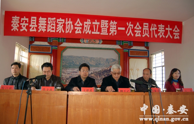 11月11日,在黨的十八大勝利召開之時(shí),秦安縣舞蹈家協(xié)會(huì)成立暨第一次會(huì)員代表大會(huì)召開?h人大副主任魏千乙出席大會(huì)并講話,縣委宣傳部副部長、縣文明辦主任王建祥,縣文廣局局長任保民出席大會(huì)。參加大會(huì)的還有縣作家協(xié)會(huì)、縣小曲協(xié)會(huì)、攝影家協(xié)會(huì)、美術(shù)家協(xié)會(huì)、書法家協(xié)會(huì)和收藏家協(xié)會(huì)代表,以及縣舞蹈家協(xié)會(huì)會(huì)員代表共計(jì)100余人。大會(huì)由縣文聯(lián)主席常文茂主持。