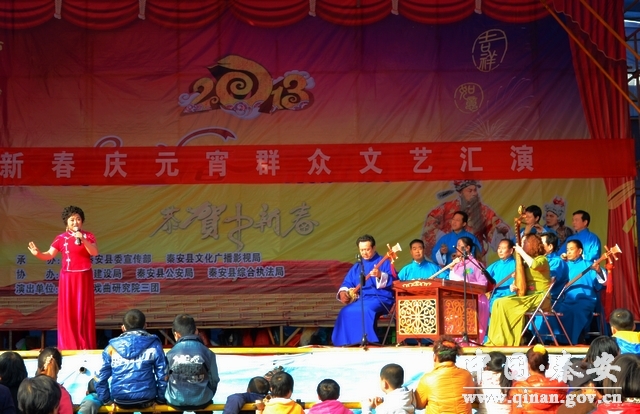 “銀蛇迎春春入戶,中華大地春似錦。辭舊鞭炮催春潮,迎新鑼鼓鬧元宵!” 2月24日,在傳統(tǒng)元宵佳節(jié)來臨之際,秦安縣在興國(guó)文化廣場(chǎng)舉行了“2013年賀新春慶元宵文藝演出”活動(dòng)。整場(chǎng)演出高潮迭起、精彩紛呈、掌聲笑聲不斷,人們紛紛用歌聲和舞蹈盡情地表達(dá)著對(duì)新生活的熱愛和對(duì)新年的美好希冀,同時(shí)今年的慶元宵文藝匯演也處處體現(xiàn)了節(jié)儉的時(shí)代新風(fēng)尚。