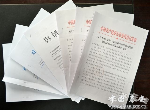 2013年,秦安縣對外宣傳工作認真貫徹黨的十八大和十八屆三中全會精神,緊緊圍繞縣委、縣政府各項中心工作,拓展宣傳領域,創(chuàng)新方法手段,完善體制機制,新聞報道、輿論引導、網絡監(jiān)管等工作取得了明顯成效,為全縣經濟社會轉型跨越發(fā)展營造了良好的輿論氛圍。全年共在中央、省、市各類媒體上刊發(fā)新聞稿件3400余篇(條),其中在報刊上刊發(fā)630篇(條),在電視上播出615篇(條),在網絡上刊發(fā)2100余篇(條)。