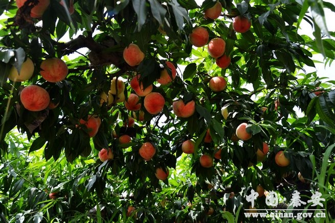 秦安蜜桃甲天下。近年來,秦安縣立足縣情,按照因地制宜、突出特色、合理布局、 深度開發(fā)、提高效益的原則,把做大做強做優(yōu)林果業(yè)作為富民強縣的重大戰(zhàn)略,以推廣先進實用技術(shù)和實施品牌培育為重點,大力發(fā)展蜜桃特色產(chǎn)業(yè),至2013年底,全縣共有桃面積10.2524萬畝,年產(chǎn)量8681.5萬公斤,產(chǎn)值26044.5萬元。秦安蜜桃不僅種植面積大而且品種多,先后從多家科研院所、蜜桃生產(chǎn)先進省市積極引進栽植早、中、晚熟鮮食蜜桃品種100多個,品種結(jié)構(gòu)和生產(chǎn)布局日趨合理。其中,早熟蜜桃品種有春艷、春蕾、早花露、早春水蜜、麥香等,六月中下旬成熟;中熟蜜桃品種有倉方早生、紅桃、大久保、北京七號、紅清水、綠化9號、沙紅桃等,七月中旬至八月中旬成熟;晚熟蜜桃品種有八月脆、處暑紅、萊山蜜、紅雪桃、秦王桃等,八月下旬至九月下旬成熟。同時,從中科院鄭州果樹研究所引進了中桃6號,春美,油蟠桃36-3,黃金蜜桃3號,中油4號、5號、8號、9號、10號、12號等10個桃樹新品種。