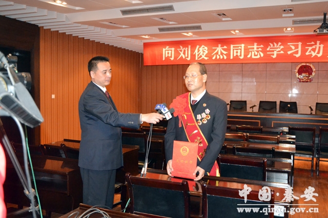 2014年11月,劉俊杰被最高人民檢察院授予“個(gè)人一等功”榮譽(yù)稱(chēng)號(hào)。2014年2月,劉俊杰被檢查出患有肺癌,于是,時(shí)任秦安縣人民檢察院副檢察長(zhǎng)的他,展開(kāi)了一場(chǎng)與病魔的殊死搏斗。從檢12年來(lái),他被稱(chēng)為心系蒼生的公仆,為百姓主公正、爭(zhēng)權(quán)益;他被稱(chēng)為公平正義的化身,為國(guó)徽爭(zhēng)尊嚴(yán)、添光彩。在干警眼里,他是一位好領(lǐng)導(dǎo),愛(ài)崗敬業(yè),勤政廉潔,沒(méi)有一點(diǎn)兒“官脾氣”,和干警打成一片;在老百姓心里,他是一位好干部,心系群眾,執(zhí)法為民,沒(méi)有絲毫“官架子”。多年來(lái),劉俊杰同志在平凡的崗位上默默地堅(jiān)守、無(wú)私地奉獻(xiàn),把百姓當(dāng)做頭上的天,以獨(dú)有的人格魅力踐行黨的群眾路線(xiàn),譜寫(xiě)了一曲“為民、務(wù)實(shí)、清廉”的贊歌。