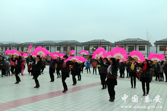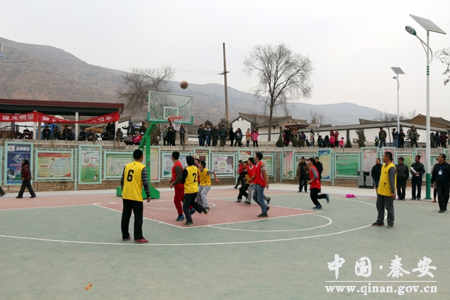 今年春節(jié),秦安農(nóng)民過年的“文化味”更濃。近日,筆者在蓮花鎮(zhèn)桑川村看到,一群婦女正隨著音樂的響起,開始有節(jié)奏地邁動(dòng)雙腿,舒展身姿,跳起來廣場(chǎng)舞,大家跳的起勁,觀眾拍手叫絕,表演者不時(shí)拿著扇子上下飛舞,中間還穿插靈活的腳步舞蹈。不遠(yuǎn)處,一場(chǎng)籃球比賽正在熱鬧進(jìn)行,大家你搶我爭(zhēng),好不熱鬧,音樂聲、笑聲久久地回蕩在山村上空。