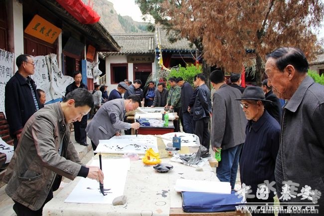 春暖花開,春光明媚,正值歡樂祥和的邢泉村廟會,近日,由秦安縣文聯(lián)主辦,秦安縣可泉書畫院承辦的書畫展暨春天筆會在書畫院舉行?h文聯(lián)、縣書協(xié)的負(fù)責(zé)人及可泉書畫院的會員代表,書法愛好者和群眾共100多人參加了開展儀式并參觀了書畫展,期間還進(jìn)行了春天筆會,現(xiàn)場為廣大群眾書寫贈送書法作品300多幅。