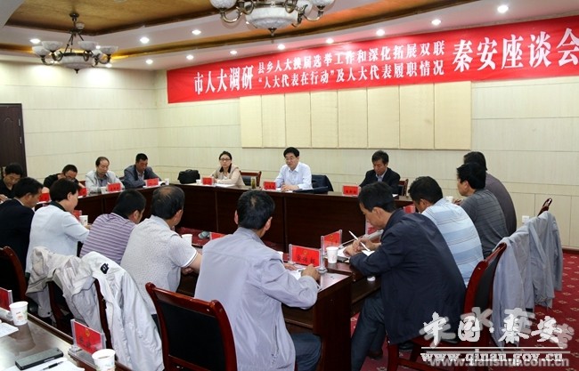 座談會(huì)上,縣人大常委會(huì)副主任劉小秦匯報(bào)了秦安縣人大常委會(huì)關(guān)于縣鄉(xiāng)人大換屆選舉工作的調(diào)研情況和關(guān)于深化拓展雙聯(lián)“人大代表在行動(dòng)”及人大代表閉會(huì)期間履職的調(diào)研情況;市人大常委會(huì)副主任劉來生與部分鄉(xiāng)鎮(zhèn)人大主席、部分市縣人大代表及組織、宣傳、統(tǒng)戰(zhàn)、公安、民政、司法等部門相關(guān)負(fù)責(zé)人座談交流。
