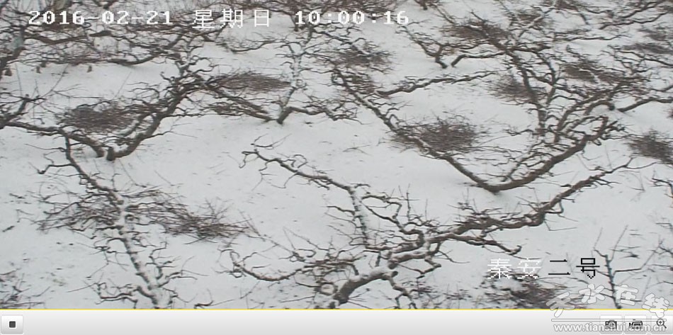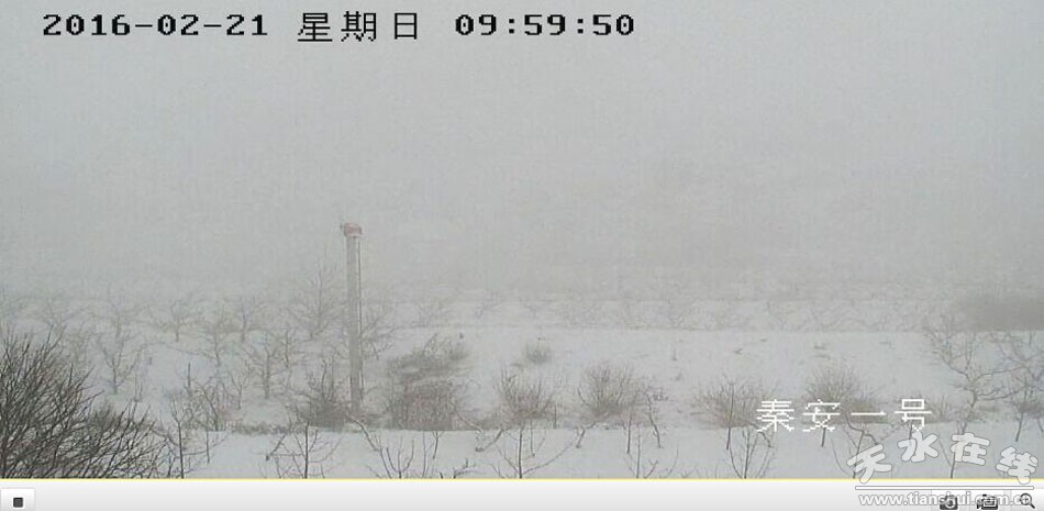 (秦安縣劉坪萬(wàn)畝桃園大雪紛飛 圖為天水在線(xiàn)“互聯(lián)網(wǎng)+秦安蜜桃”行動(dòng)“秦安蜜桃二號(hào)”2016年2月21日上午10:00:16視頻直播截圖)